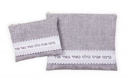Ronit Gur Tallit and Tefillin Bags Set, Linen Like Barcheinu in Gray It will surely give you pride to know that this bag, like all Ronit Gur's products was designed and sewn in Israel.