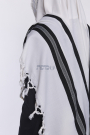A built-in lining creates a non-slip effect, helping the tallit remain securely on the shoulders throughout prayer. Timeless black stripes reinforce its traditional character and clean appearance, and the tallit also features a luxurious side fringe.